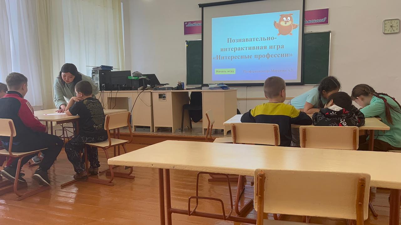Сегодня, профориентатором школы Маратовой А.У. проведено профориентационное занятие среди учащихся 1-4 классов "Мир профессий"